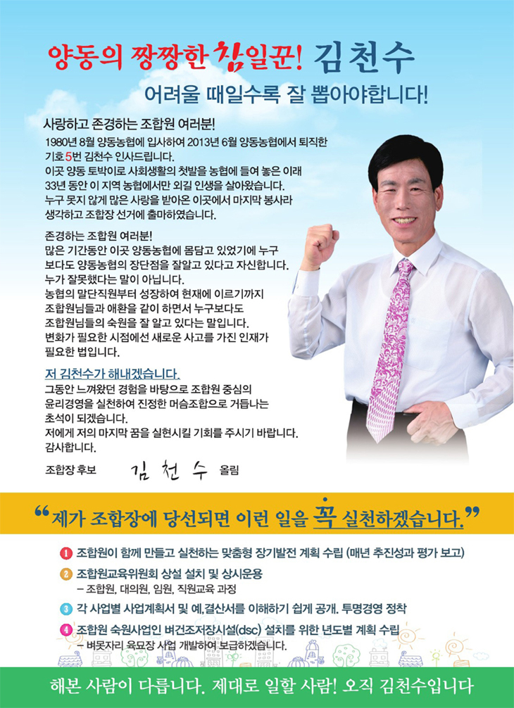 ±èõ¼ö Á¶ÇÕÀå Èĺ¸ ¼±°ÅÈ«º¸¹° (¾çµ¿³ó¾÷ Çùµ¿Á¶ÇÕ)