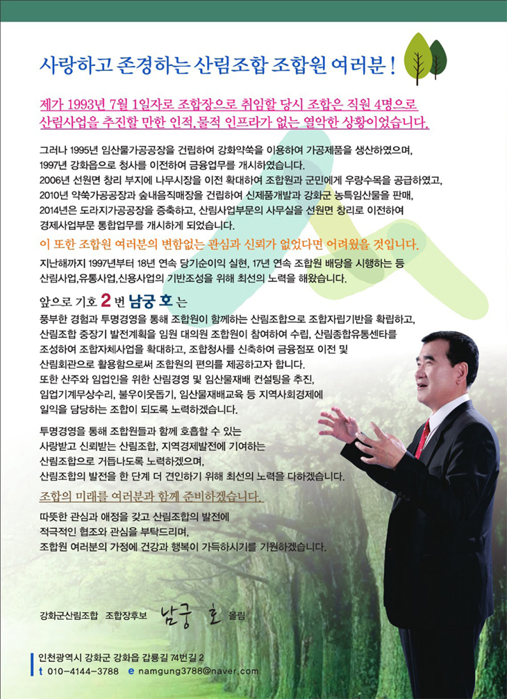 ³²±ÃÈ£ Á¶ÇÕÀå Èĺ¸ ¼±°ÅÈ«º¸¹° (°È±º »ê¸²Á¶ÇÕ)